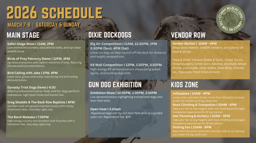 Ready to make some unforgettable outdoor memories? See the full schedule and find out more at the Etowah Wildlife Expo's website!